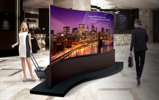 Stop them in their tracks, coming and going, with this cutting-edge 65-inch freestanding curved LG OLED Dual-View display. Its incredible picture quality and revolutionary pencil-thin design add artistic value to its display functionality. LG OLED delivers perfect black and a rich color spectrum that bring shades and colors to life, while a faster response time ensures that moving images remain perfectly clear without blurring. Remote controlled dual-side technology allows users to display matching or different content on each side of the display.
